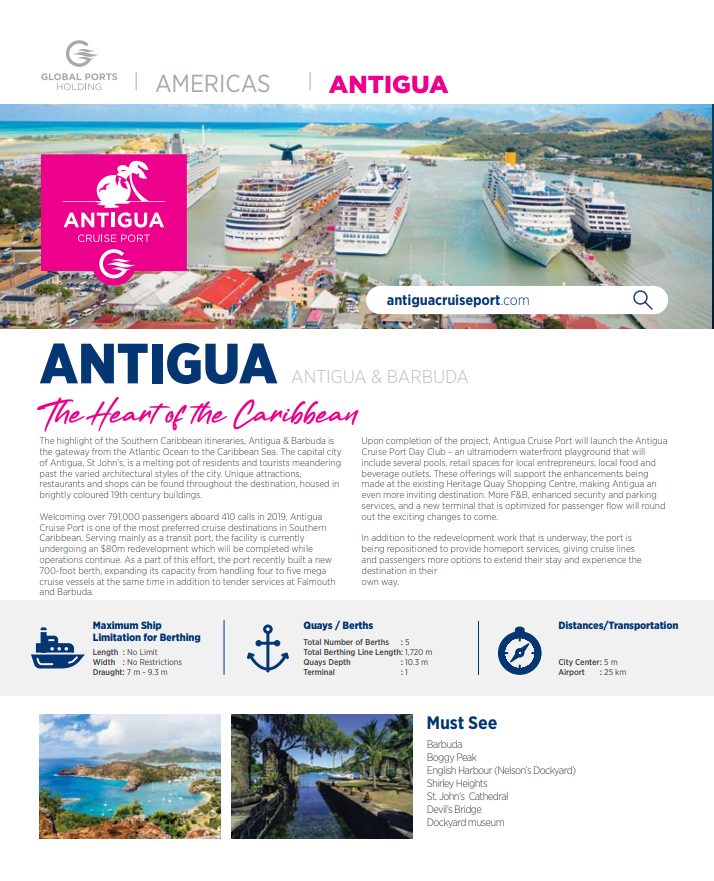 Follow Antigua Cruise Port on social media @antiguacruiseport – Facebook, Instagram, LinkedIn and WhatsApp Channels. Subscribe to our Cruise Connect weekly newsletter, or visit the News section on our website for the latest cruise schedules, events, and announcements.